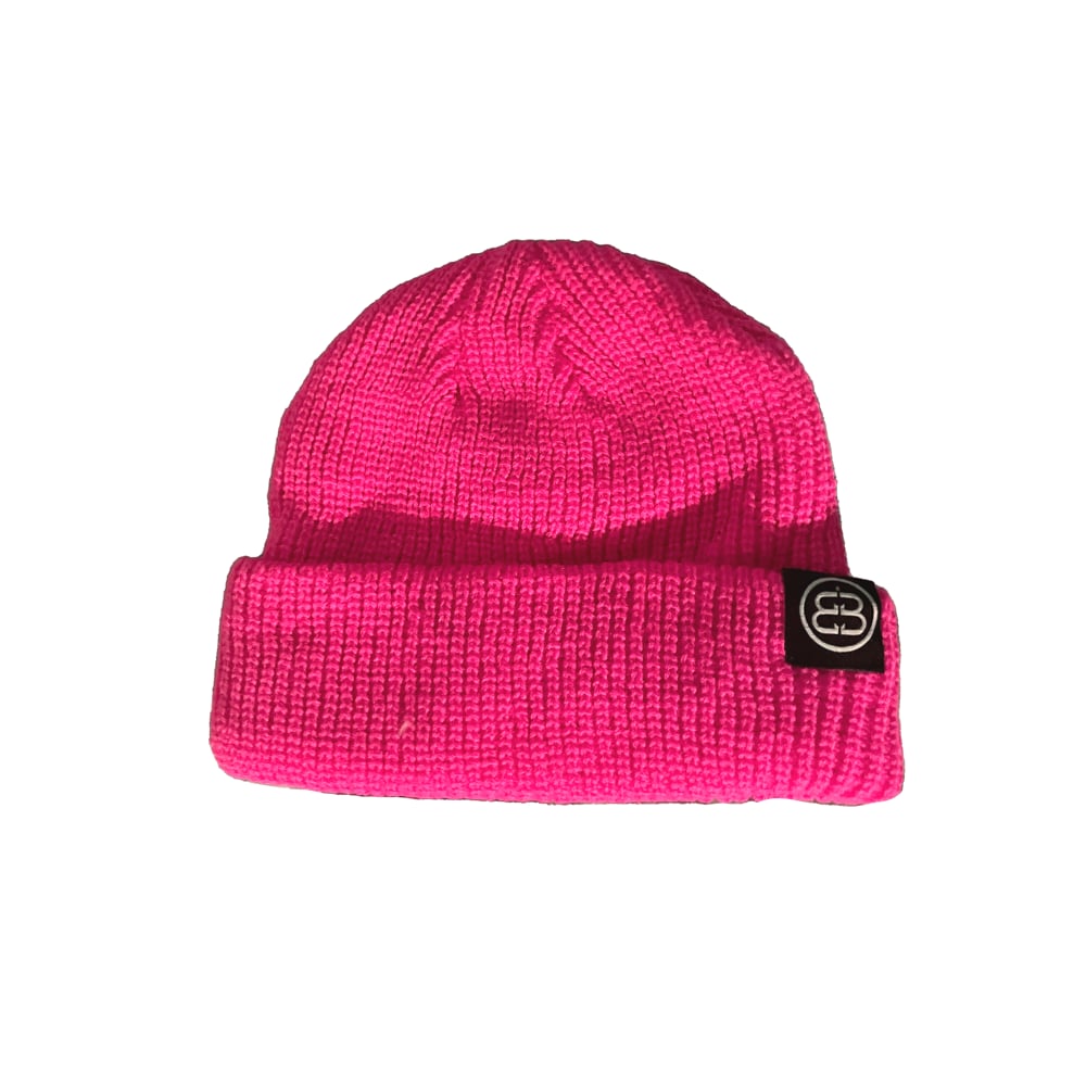 Pink Fuchsia beanie 100% cottom normal size with black waven label and white bamboyz logo.