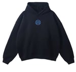 Oversize heavyweight black hoodie 100 % cotton comfortable and cozy. This hoodie represents all the extreme sports that we have been able to sponsor since 2014